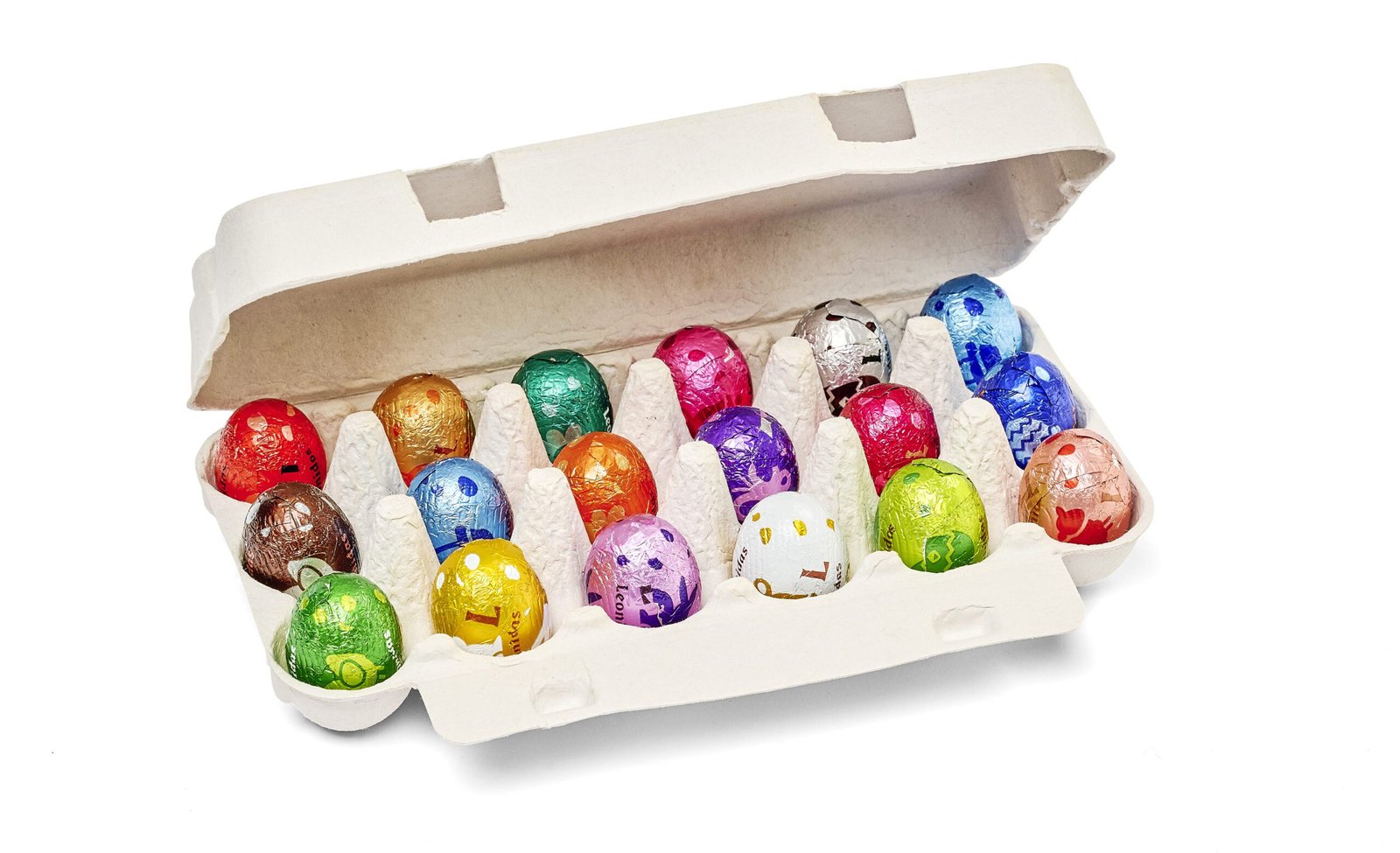 Echte eierdoos gevuld met 12 of 18 paaseieren naar keuze.